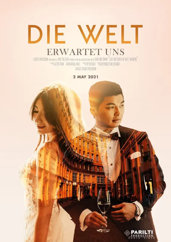 Stellen ihr euch eine außergewöhnliche Einladung für eure Gäste vor? Oder habt ihr aktuell kein Hochzeitsplan und wollt eure „Love Story“ mit einem Poster auf ewig festhalten? Dann ist das Save the Date Film Poster genau das Richtige für euch. Mit dem Save the Date Film Poster, welches von eurem Paarshooting-Fotos erstellt wird, könnt ihr euren Partner oder eure Liebsten mit diesem gefühlsüberragenden Geschenk überraschen. Falls es ein Hochzeitsplan gibt, könnt ihr es am Eingang des Hochzeitssaals auf einer Staffelei aufstellen und als digitale Einladungskarte an eure Gäste versenden. Und dies als digital kostet nur 250€ auf Ihr Paarshooting-Paket zusätzlich.